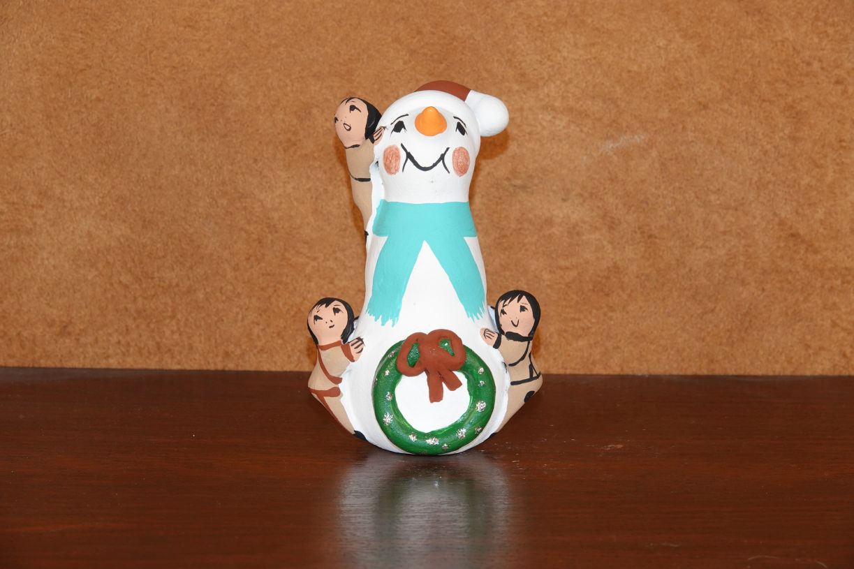 Signed Pueblo Christmas clay Snowman, Christmas21