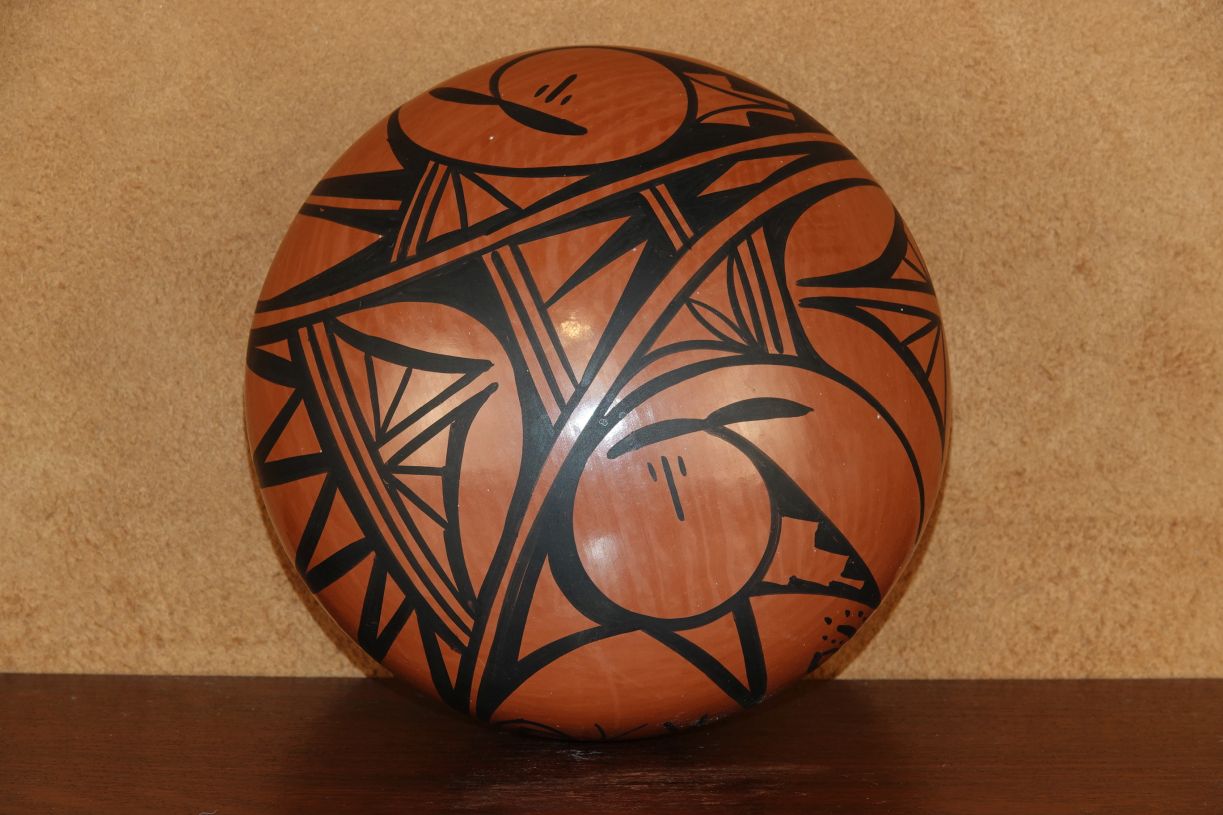 Jemez Pueblo Black on Red Redware Seedpot By Donald Chinana