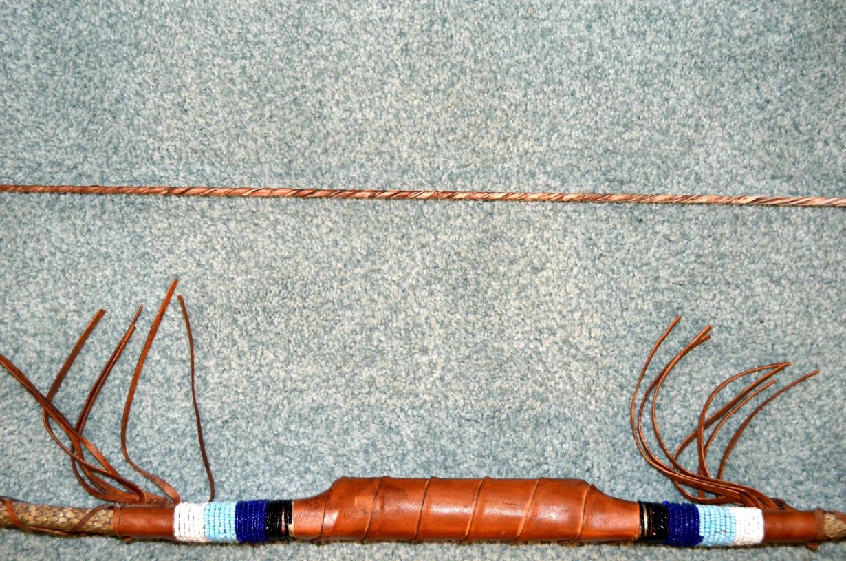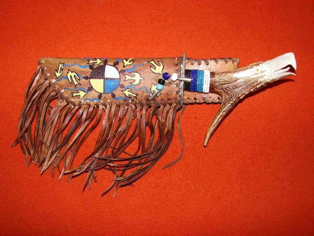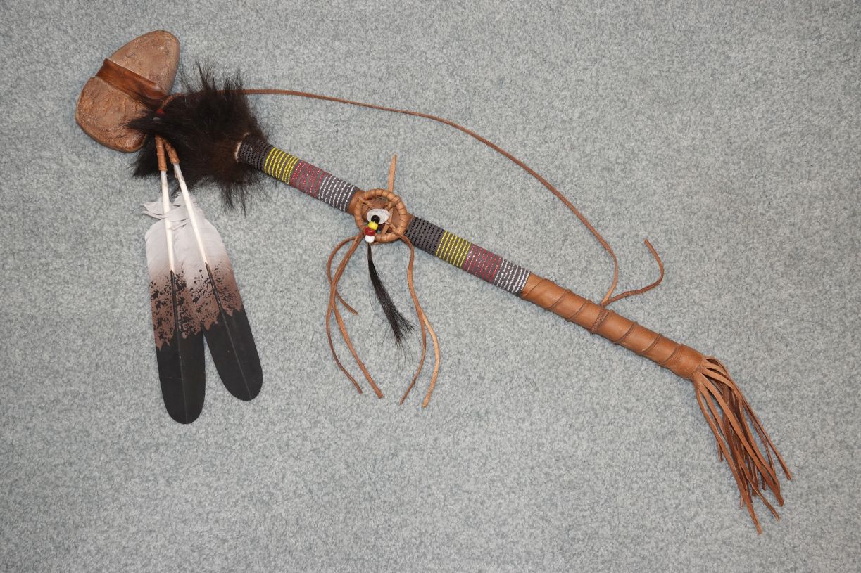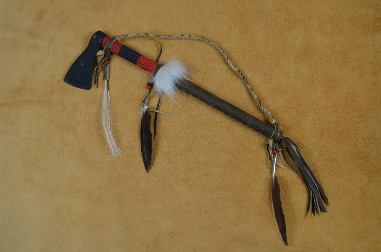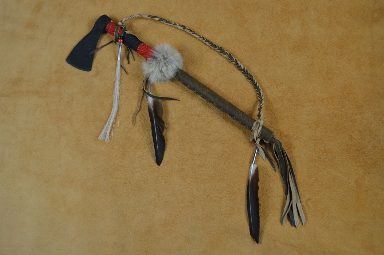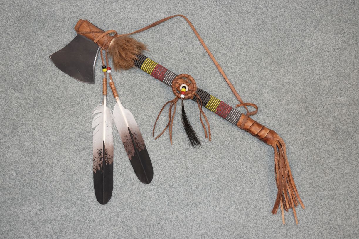 Buckskin wrapped double beaded Tomahawk.