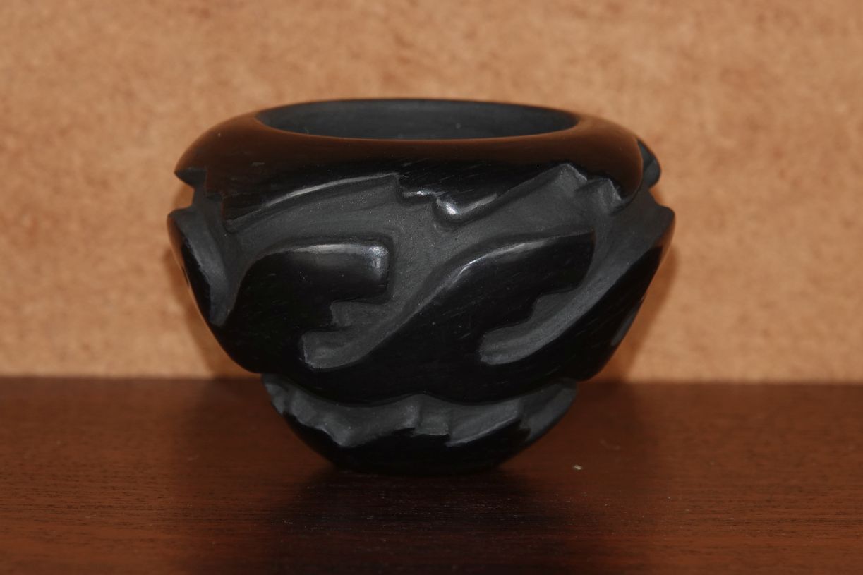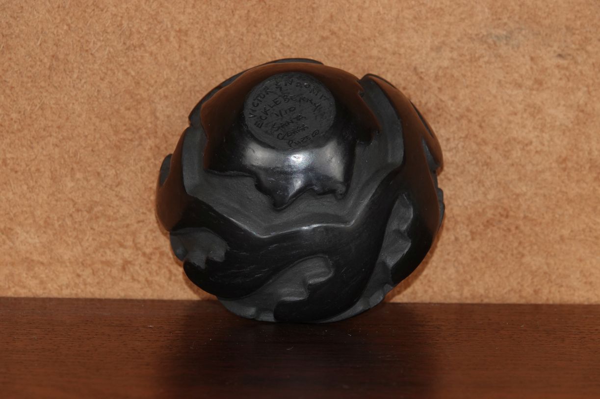 Santa Clara Pueblo black Incised Serpent pot by Victor and Naomi Eckleberry