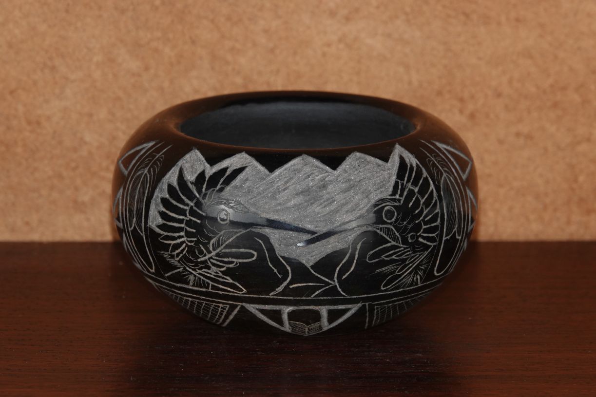 Santa Clara Pueblo Bowl by Norman Redstar (Lakota Sioux)  WI-CAHPE-LUZA Swift Star