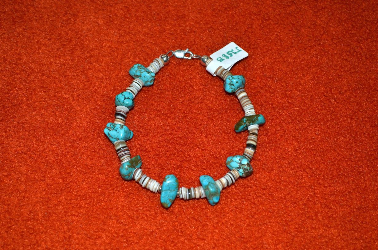 ![]() $70.00 8" Turquoise Bracelet by Robert Crying Redbear (Cree) Kingman Turquoise with Tiger Cowrie Sold |
